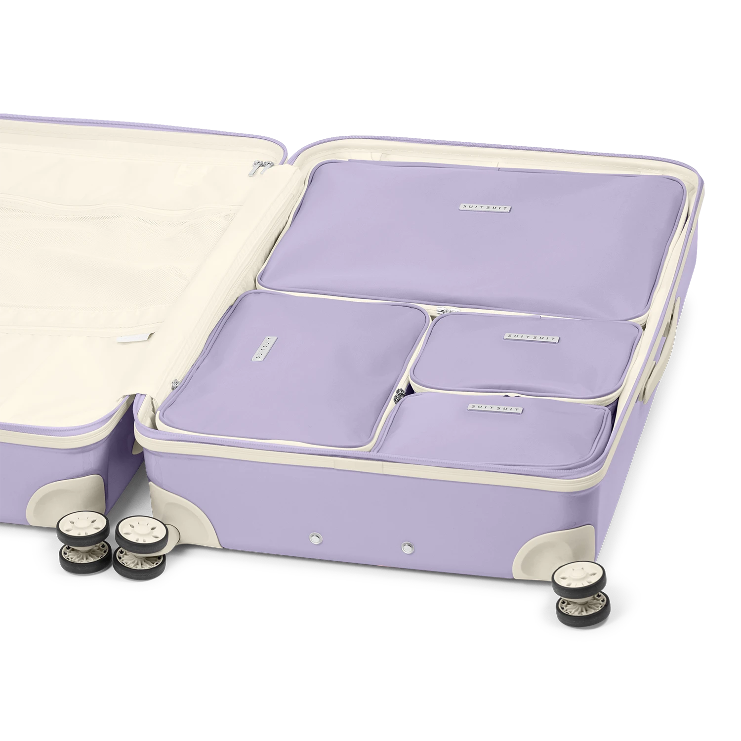 Deze Fabulous Fifties packing cube set is speciaal samengesteld voor onze grote (76 cm) koffers. De set bestaat uit vier verschillende typen organizers die precies in je reiskoffer passen. De set sluit naadloos op elkaar aan zodat alle ruimte in je koffer optimaal benut wordt. In de iconic kleur Royal Lavender ben je zo goed voorbereid voor je vakantie!