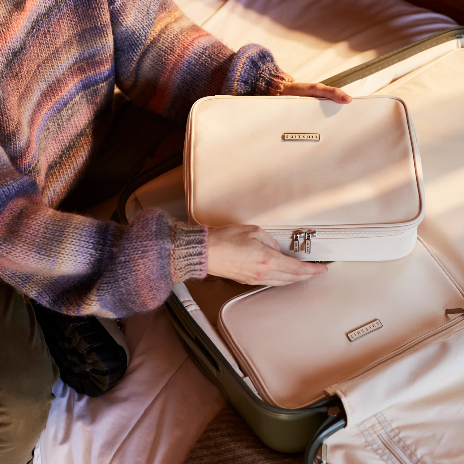 Deze Natura packing cube set is speciaal samengesteld voor onze grote (76 cm) koffers. De set bestaat uit drie verschillende typen organizers die precies in je reiskoffer passen. De set sluit naadloos op elkaar aan zodat alle ruimte in je koffer optimaal benut wordt. De Macadamia kleur matcht met de binnenkant van de Natura koffers. Zo ben je goed voorbereid voor je vakantie!